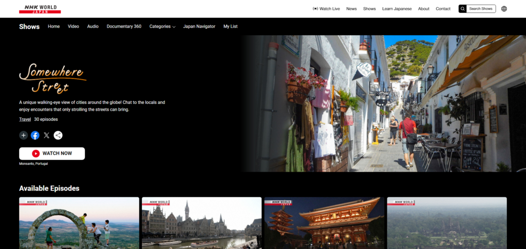 Conhece mais programas na web sobre visitas virtuais. O canal nipónico NHK, produz o programa Somewhere Street, no mesmo conceito. Faz uma visita!